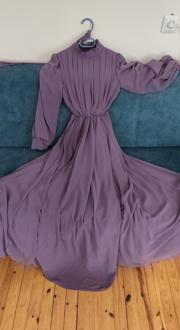 Drapeli Mor Uzun Kadın Elbise 1defa kullanildi