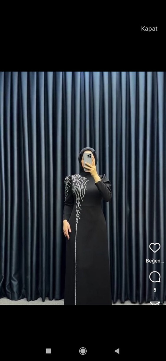 Drapeli nakış detaylı, yüksek yakalı ve uzun kollu siyah uzun elbise. Düzgün sentetik kumaştan, modest ve gotik tarzda günlük kullanım için uygundur. boyunda kisaltma vs yapilmadi.160boy giyildi+topuklu.Bir kere giyildi etiketi var.