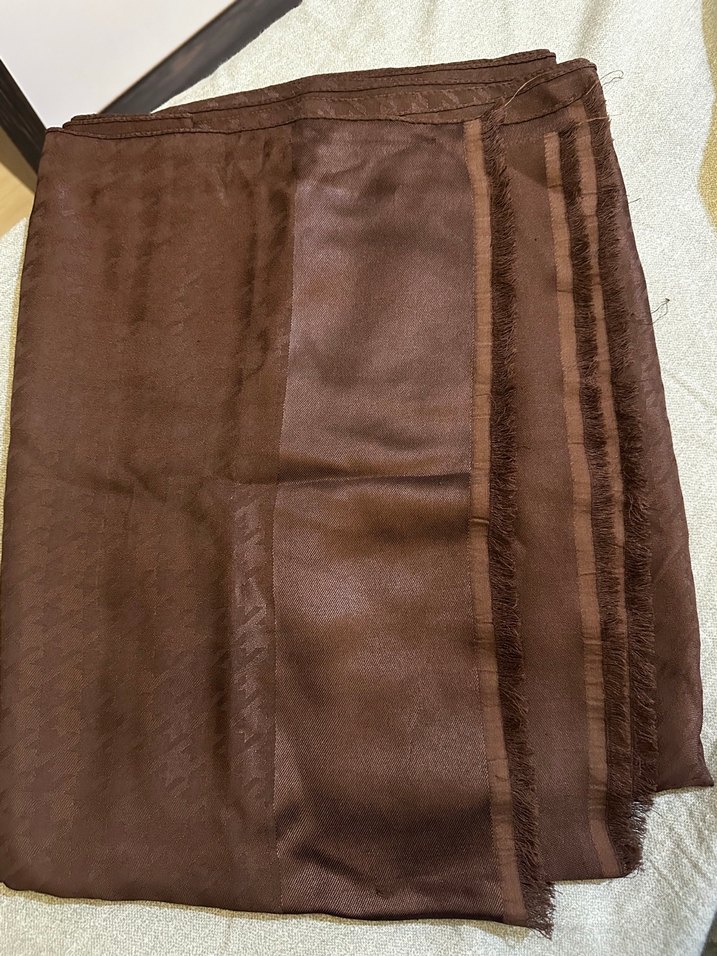 Kadınlar için drapeli tasarıma sahip, parlak kahverengi ipeksi kumaştan yapılmış, rahat ve sade bohem tarzda şal. Katmanlama için uygundur. Küçük çekilmeler var fotoğrafta belirtildi