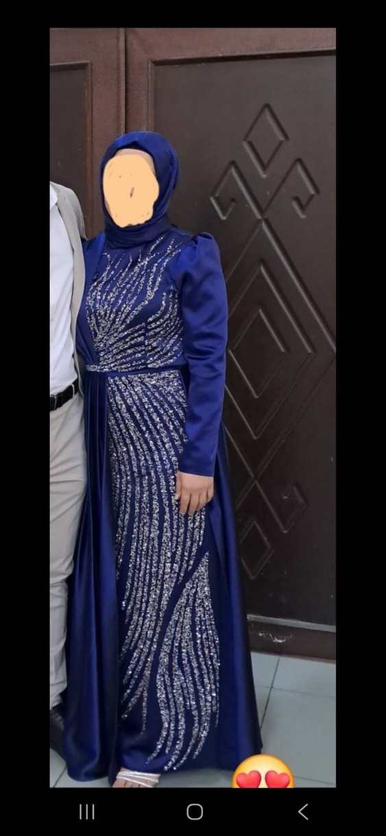 Drapeli Parlak Mavi Tesettür Abiye Elbise