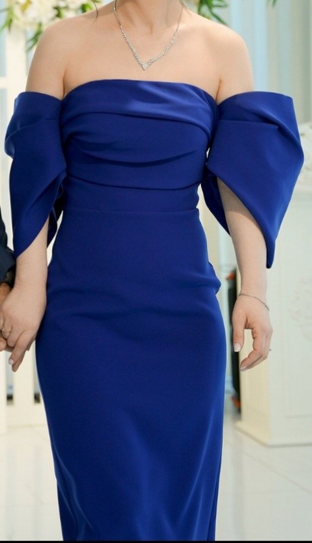 Drapeli kısa kollu, tek renk saks mavisi klasik modern kesim abiye elbise. 1 kez kendi nişanımda giydim. kuru temizlemesi yapıldı. 36 beden çok şık ve rahat bir elbise