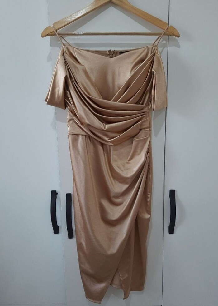 Elbiseyi 1kez giydim. İçinde astarı var. Çok temiz,şık ve rahat bir elbise yeni gibi. Rengi parlak şarap rengine yakın bej. Boyu uzun gelmişti terzide kestirip diz hizasında yaptırdım. 1.50 boylular için diz hizasında.
