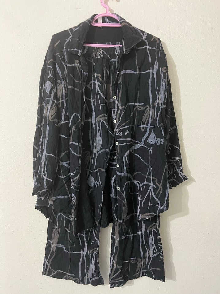 Uzun kollu, drapeli ve kesik yakalı bu hamile bluzu, siyah bağlama desenli ve bol kesimdedir. Keten kumaştan olup günlük kullanıma uygundur. Kapalılar için de uygundur takım