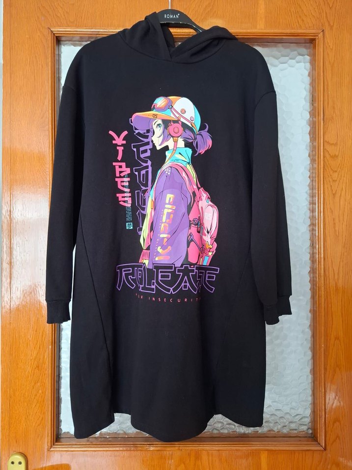 Sokak stiline uygun, uzun kollu, drapeli ve baskılı siyah sweatshirt. Yumuşak ve rahat fleece kumaştan üretilmiştir.