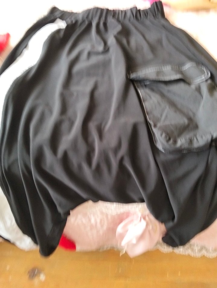 Drapeli, bol kesim, siyah midi şalvar Sentetik kumaştan, gündelik kullanıma uygun, goth ve athleisure tarzında.