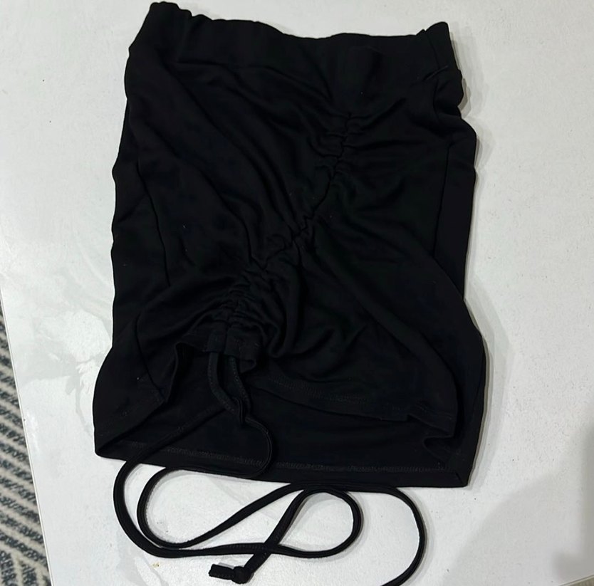 Drapeli Siyah büzgülü mini etek