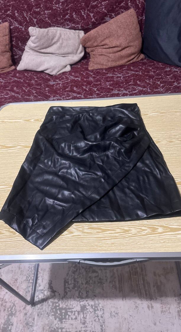 Drapeli siyah deri midi etek, vücuda oturan kesimi ve koyu tonu ile cesur goth tarzını yansıtır. Dış mekan kullanımı için uygundur.