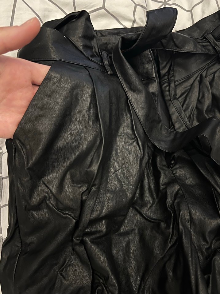 Drapeli Siyah Deri pantolon