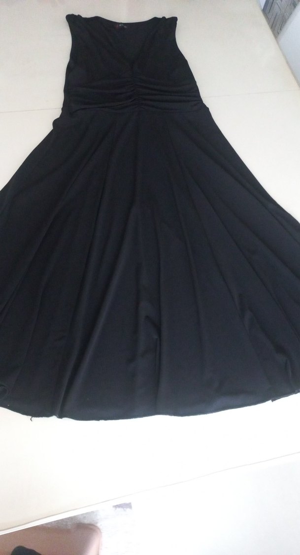 Drapeli Siyah diz altı Kadın siyah elastik kumaştan şık ellbise