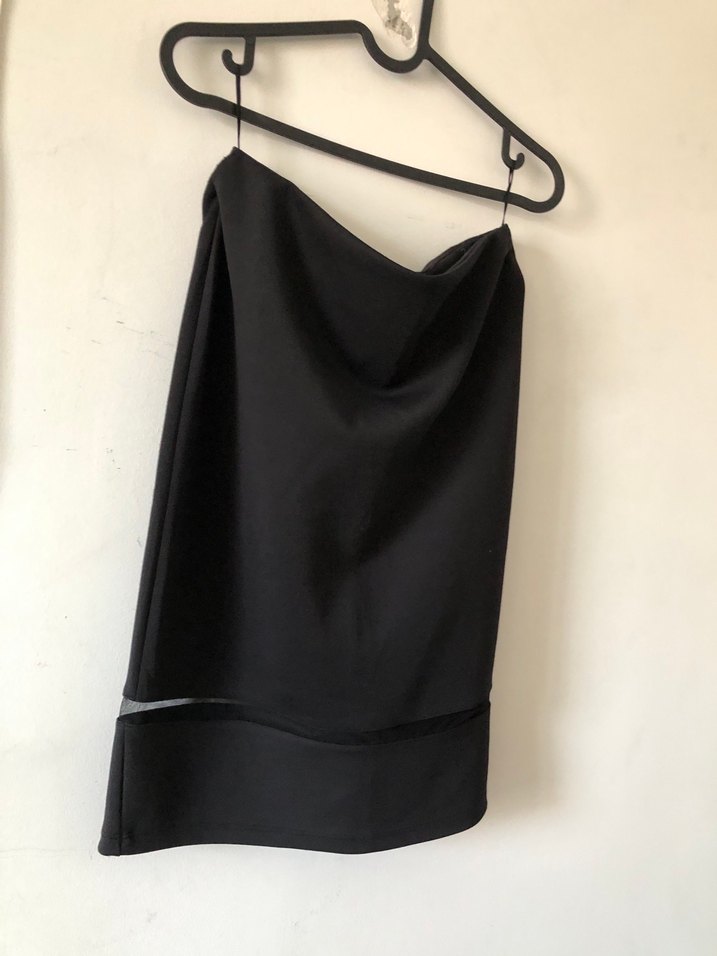 Drapeli tasarıma sahip, siyah, yumuşak sentetik kumaştan üretilmiş, minimalist gotik tarzda günlük kullanıma uygun.