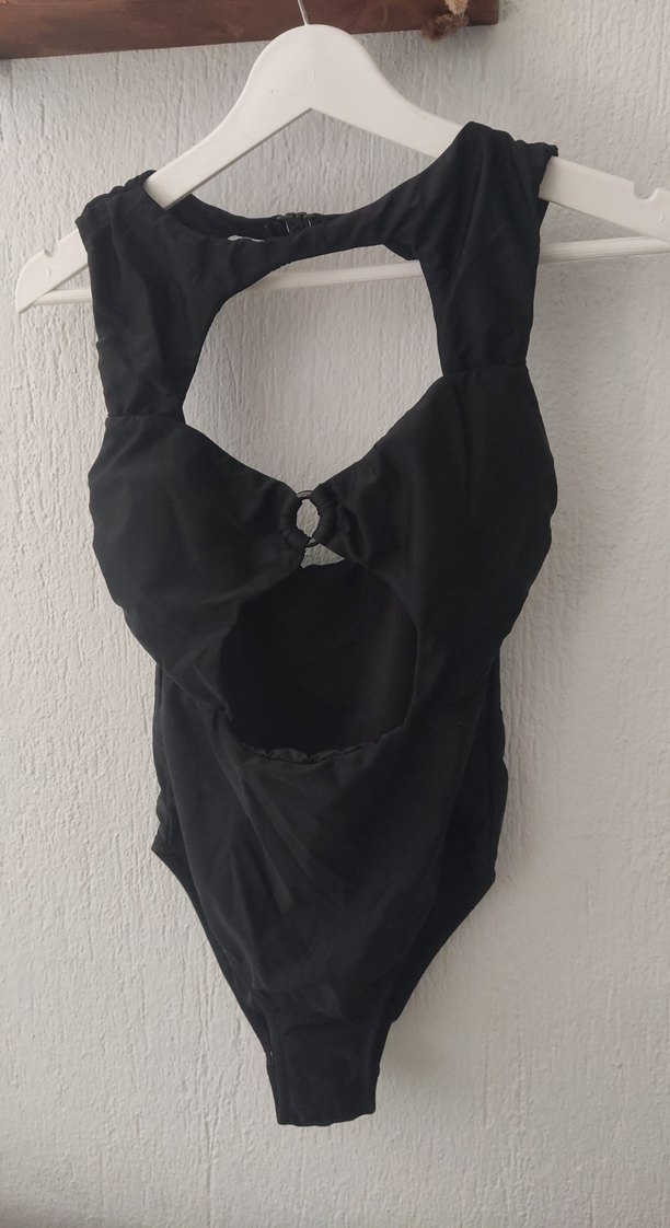 Drapeli ve kolsuz siyah mayo, gotik tarzı yansıtarak plajda şık bir görünüm sağlar. Midi boyu ve vücuda oturan kesimiyle öne çıkar.