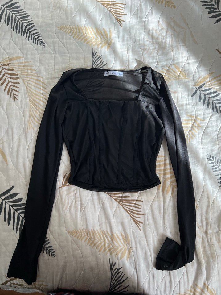 Drapeli tasarıma sahip, uzun kollu ve tek renk siyah, fitted kesim gothic kadın bluz. Sentetik kumaştan, günlük kullanıma uygun.