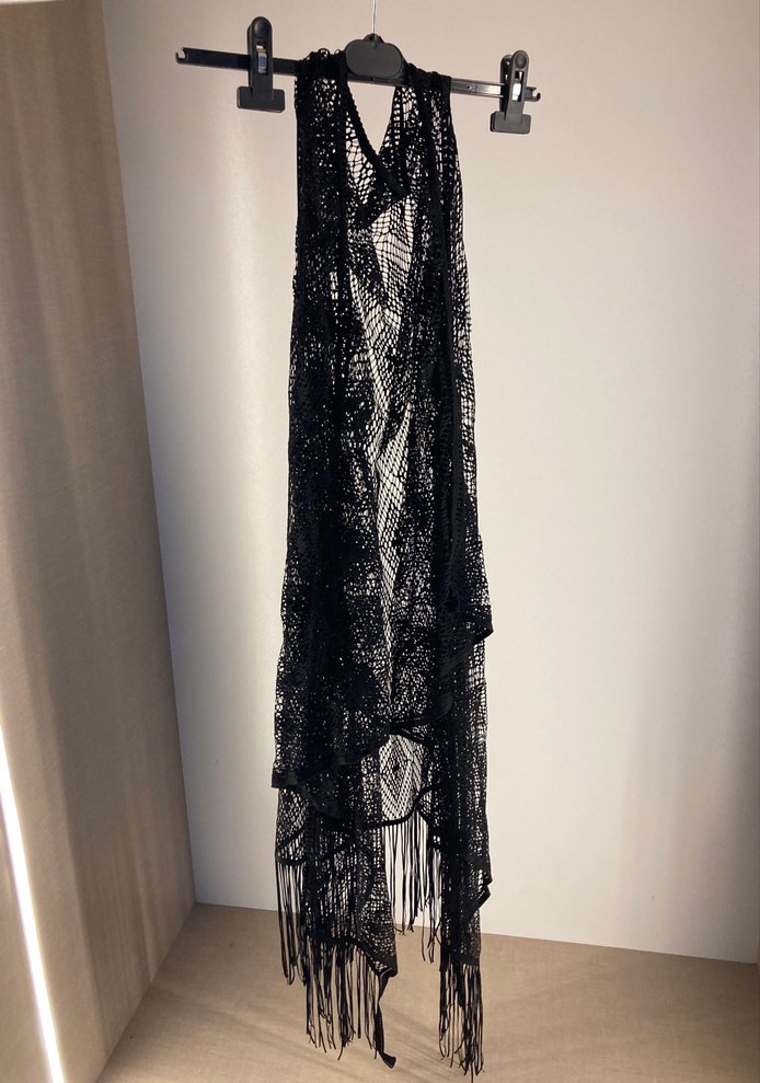Siyah renkte, drapeli gotik tarzda kadın şalı. Tekstilden üretilmiş olup, trend belirleyici ve avangart moda anlayışına uygundur.