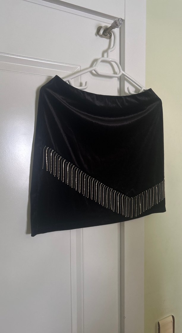 Drapeli ve nakış detaylı siyah mini etek, sentetik kumaştan üretilmiştir. Gotik tarzda ve parti için uygundur.