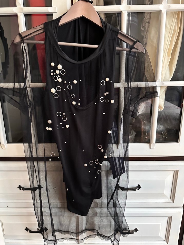 Drapeli Siyah Gotik transparan tunik. İnci boncuk detaylı. Twist