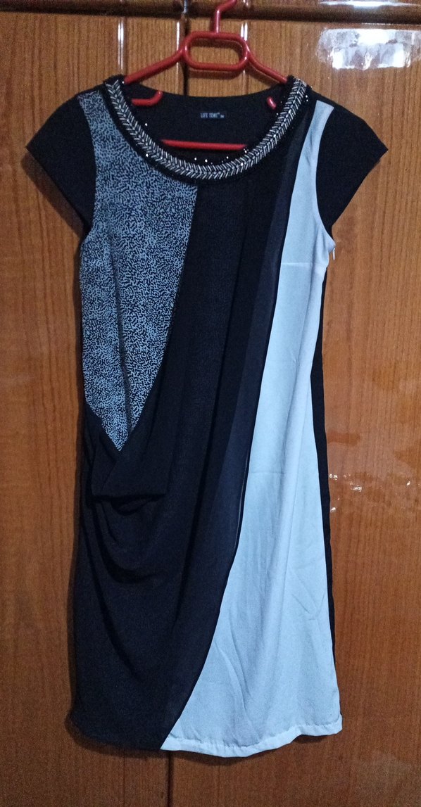Drapeli Siyah Gri elbise