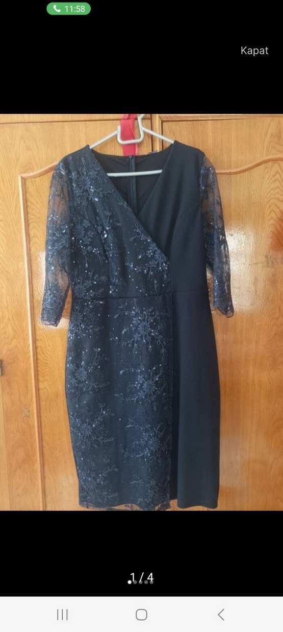 Siyah uzun abiye elbise, V yaka ve kısa kollu, drapeli tasarım ve işlemeli çiçek desenlerine sahip. Düzenli kesim, gotik şıklık sunar, düğünler için uygun.