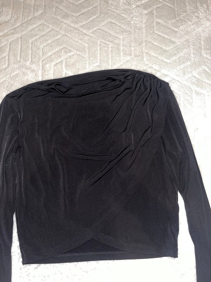 Drapeli Siyah Kadın Bluz