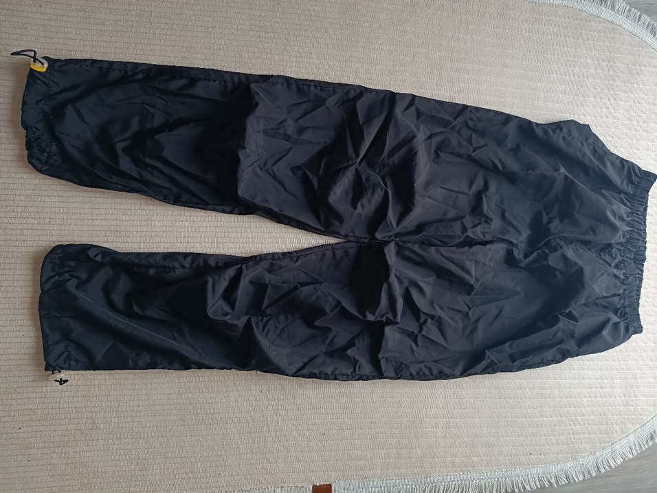 Drapeli tasarıma sahip siyah kadın pantolon, yumuşak sentetik kumaştan üretilmiştir. Outdoor sokak stili için uygundur.