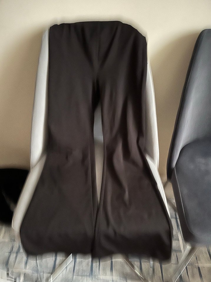 Drapeli tasarıma sahip, siyah renkte, normal boyda ve sentetik kumaştan yapılmış kadın kumaş pantolon.