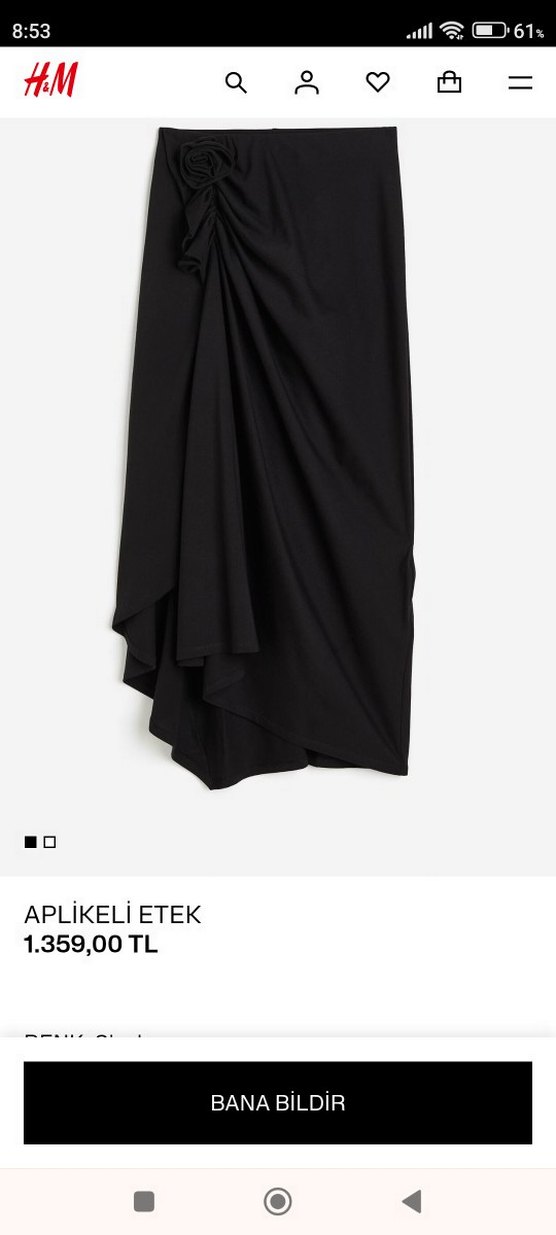 Siyah, drapeli ve uzun kesimli bu kadın midi etek, yumuşak sentetik kumaştan üretilmiştir. Minimalist ve çağdaş tarzıyla romantik akşamlar için uygundur.