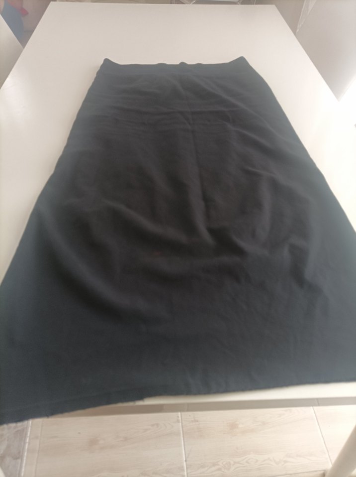 Drapeli ve fit kesim siyah kadın uzun etek, yumuşak sentetik kumaştan yapılmıştır ve minimal, günlük stile uygundur.