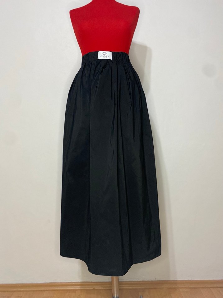 Siyah, drapeli uzun etek, sentetik kumaştan üretilmiş, bol kesimdir. Minimalist tarzıyla günlük kullanıma uygundur.