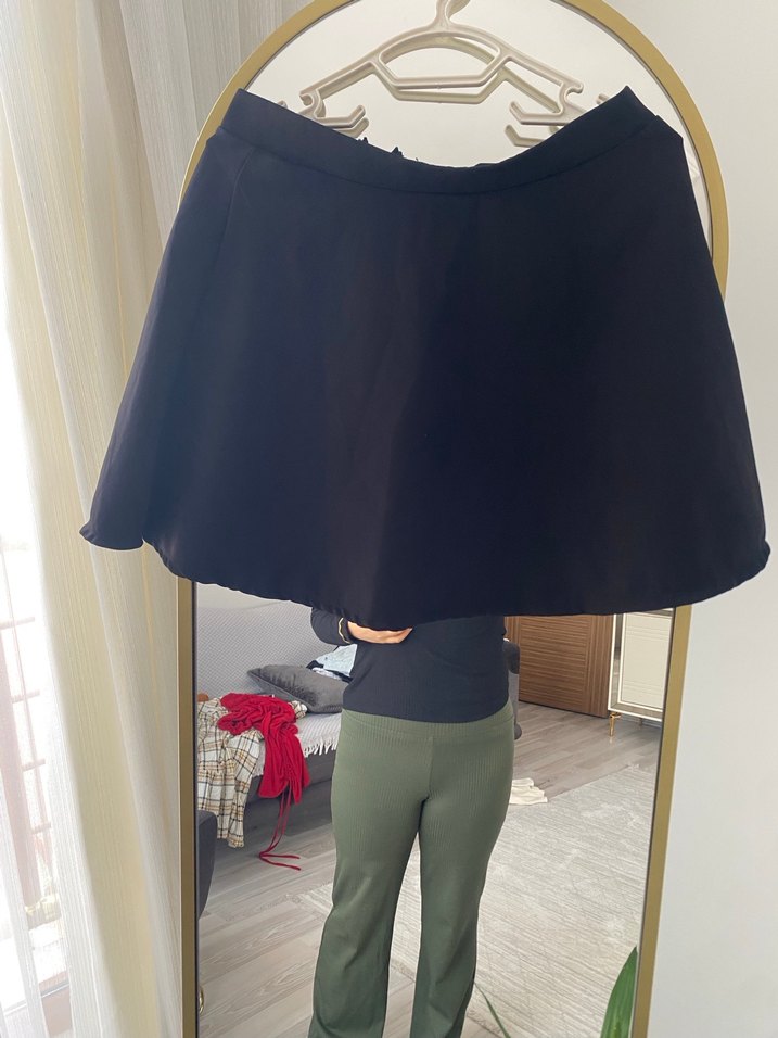 Drapeli Siyah Midi Eteği