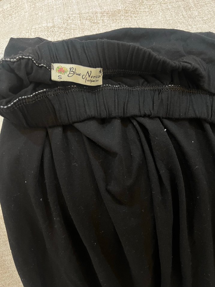 Yumuşak penye kumaştan, drapeli ve bol kesim siyah midi etek . Gotik tarzda romantik akşamlar için uygundur.