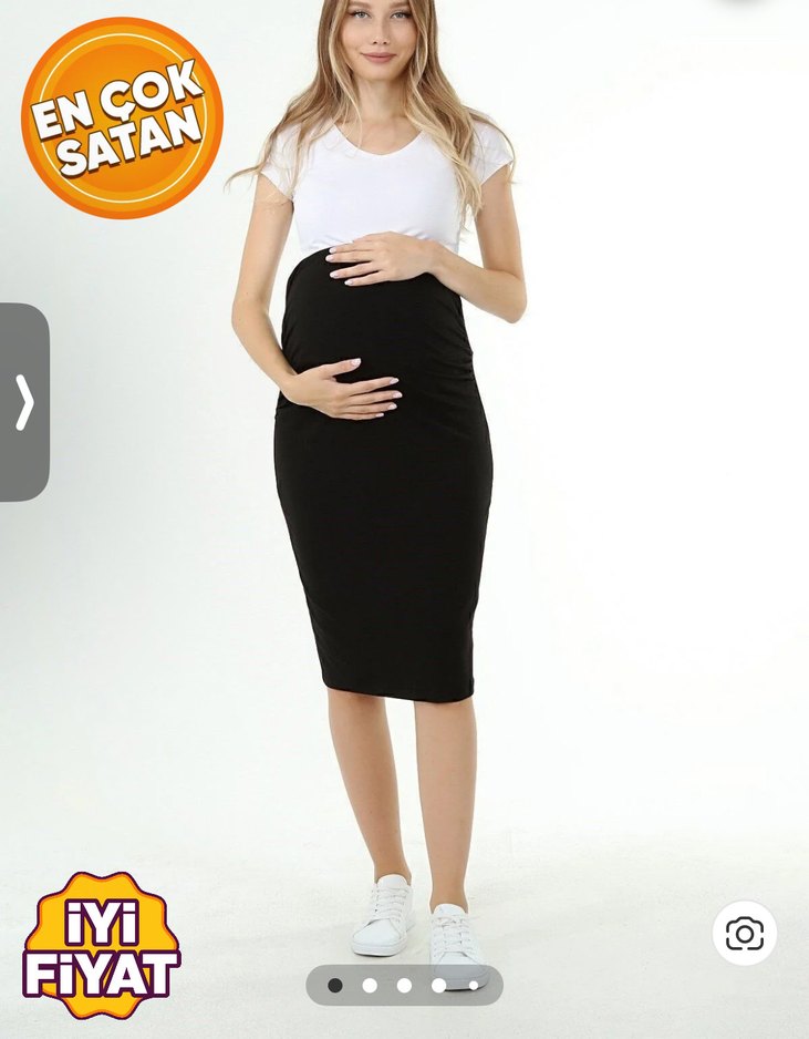 Drapeli, siyah midi boy hamile eteği, pamuklu kumaştan, ofis ve günlük sokak stiline uygun, minimalist ve trend görünümlü. Hiç kullanılmadı