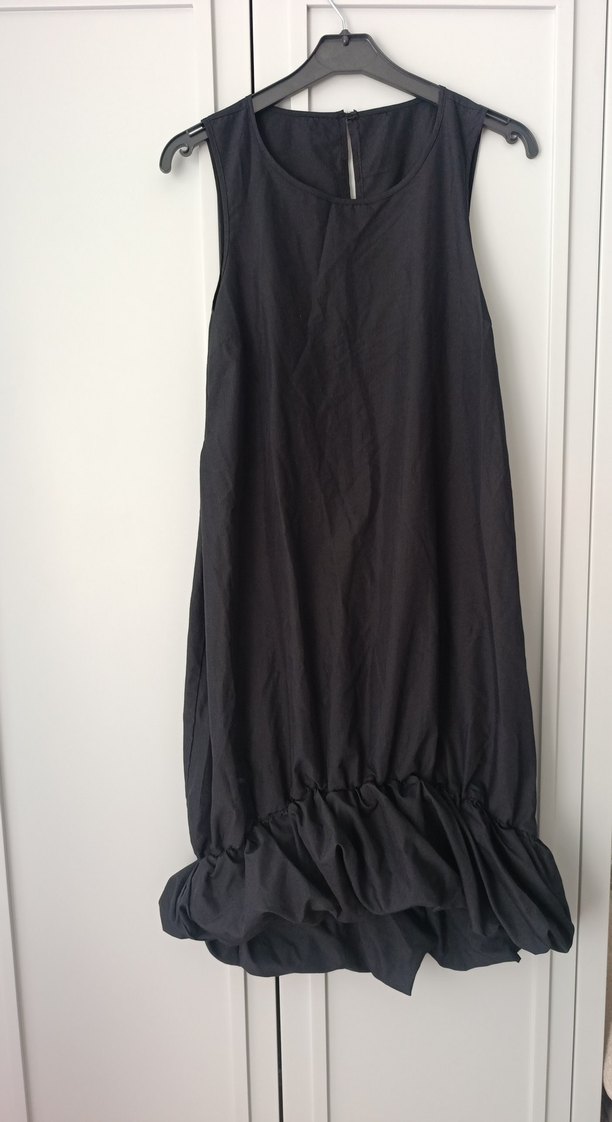 Siyah midi hamile eteği, bol kesim ve drapeli tasarıma sahip, keten kumaştan yapılmıştır, günlük kullanım için uygundur.