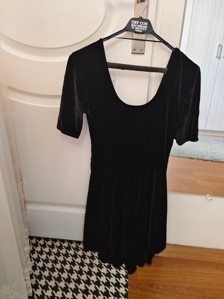 V yaka, kısa kollu, drapeli siyah midi elbise, dar kesimiyle romantik akşamlar için uygun, gotik Paris tarzı yansıtıyor.