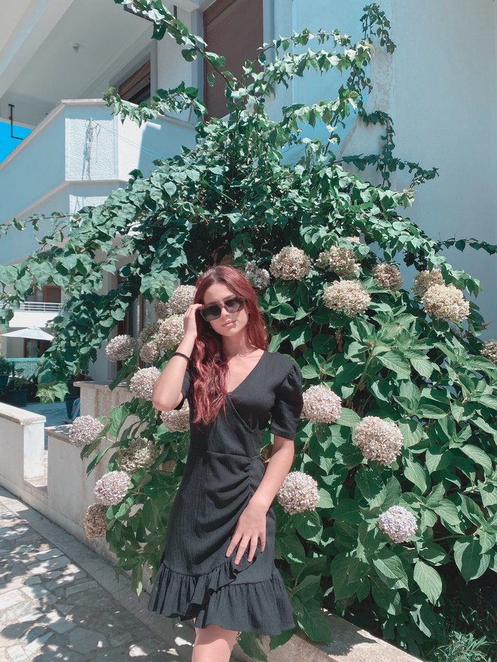 Drapeli Siyah Midi V Yaka Kadın Elbise