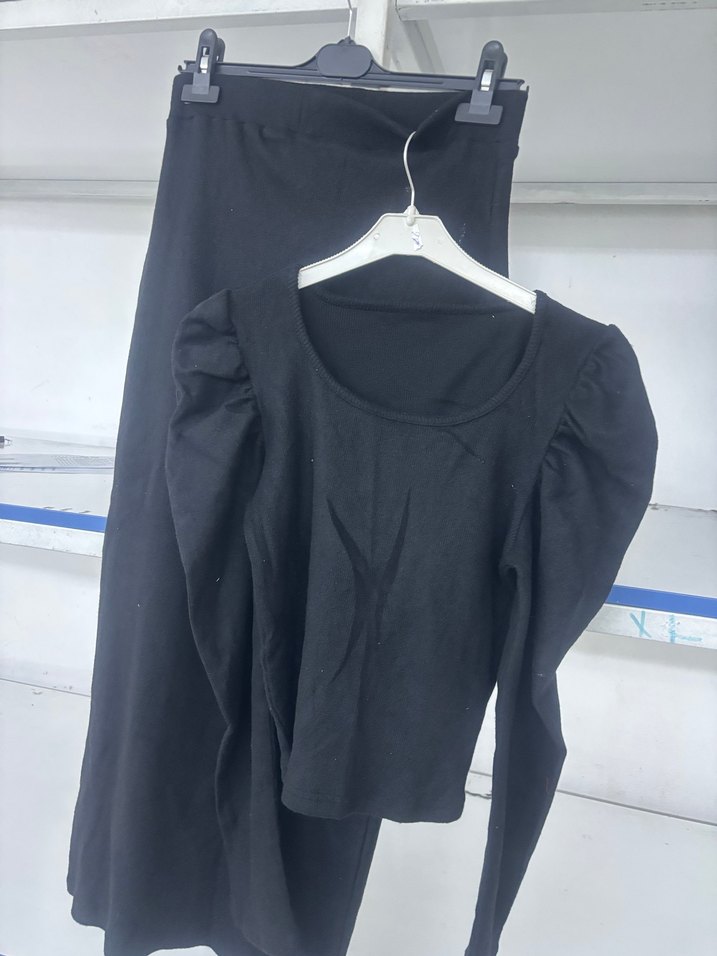Suni kumaştan, uzun kollu, drapeli tasarıma sahip siyah mini, dar kesim bluz. Yuvarlak yaka ve minimalist sokak stili ile öne çıkar.