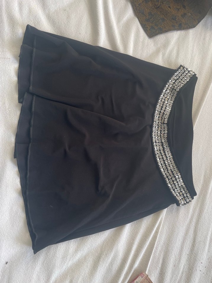 Bu siyah, drapeli, vücuda oturan mini etek, payetli bel detayıyla romantik gece için şık ve gotik tarzda bir seçenek sunar.