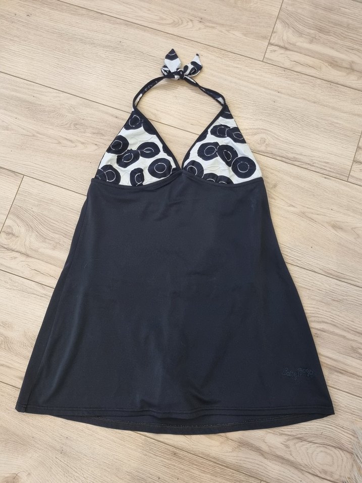 38/40 beden uyumlu Siyah, drapeli ve mini uzunlukta, desenli askılı kadın mayo. Sokak modasına uygun, günlük kullanıma elverişli.