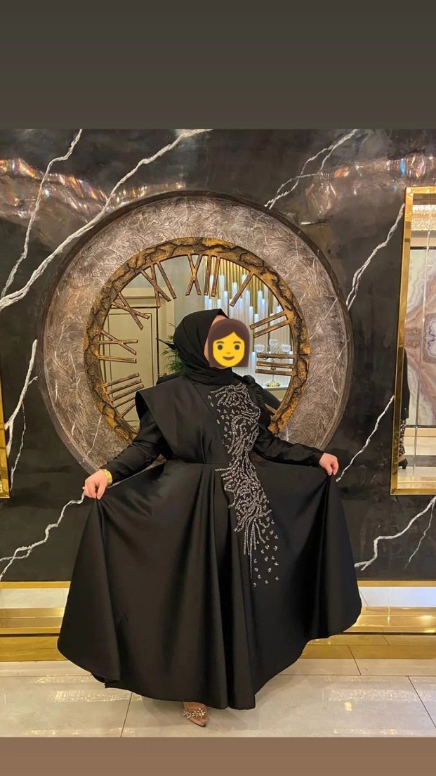 Yüksek yakalı, uzun kollu ve bol kesim siyah uzun elbise. Drapeli tasarım ve nakış detaylarıyla gotik ve sade bir şıklık sunar.(pazarlık payı vardır)