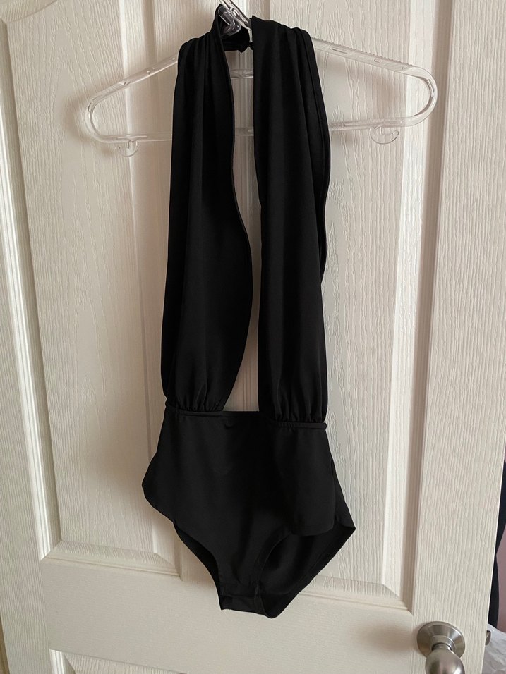 Siyah, drapeli ve strappy kollu bu kadın mayo, midi boyda ve fitted kesime sahiptir. Minimalist gotik stile uygundur ve günlük kullanım için idealdir.