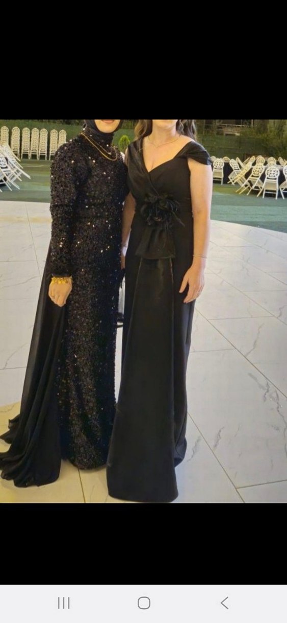 Bu siyah uzun abiye elbise, straplez yakası, drapeli detayları ve çiçek aksanıyla klasik ve şık bir görünüm sunar. ✨ 40 beden tam kalıptır. 1 kere giyilmiştir.