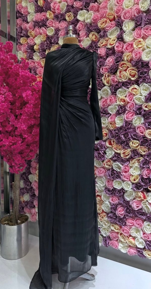 Siyah uzun abiye elbise, drapeli tasarımı, straplez yaka ve uzun kollu. Düzenli kesim ve hafif batik desenli, şık davetler için ideal. -SATILIKTIR -Sadece 1 kez giyildi hiç bir kusuru yoktur. -38-40 beden uyumludur. -Kargo alıcıya aittir,pazarlık yapmayınız.