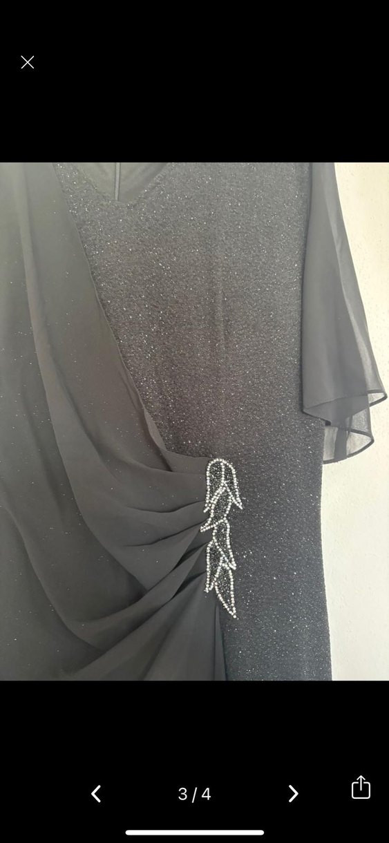 Bu dar kesim siyah abiye elbise, V yaka ve ince askılıdır. Drapeli tasarımı, hafif ışıltısı ve şık boncuk detaylarıyla düğünler için uygundur. ✨