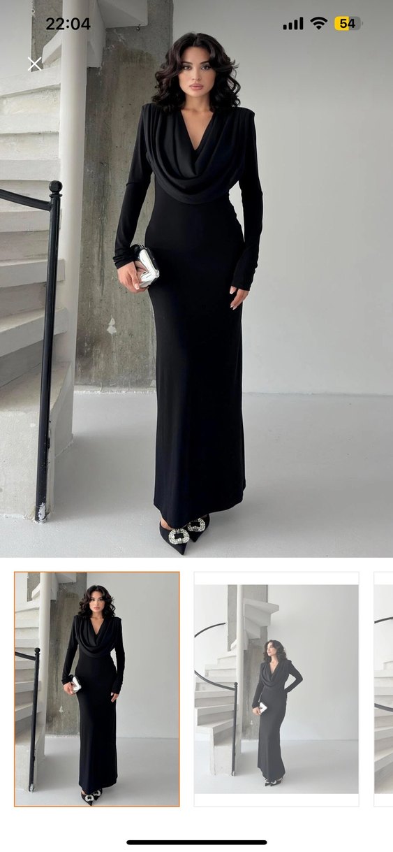 Drapeli Siyah Uzun Kadın Elbise