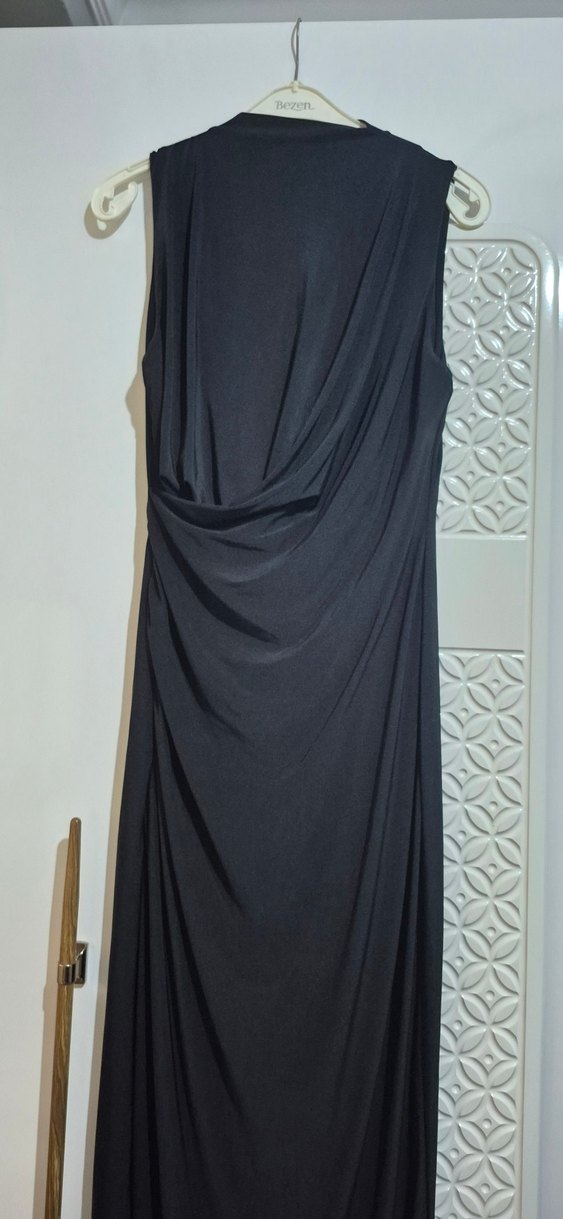 Drapeli Siyah Uzun Kadın Elbise