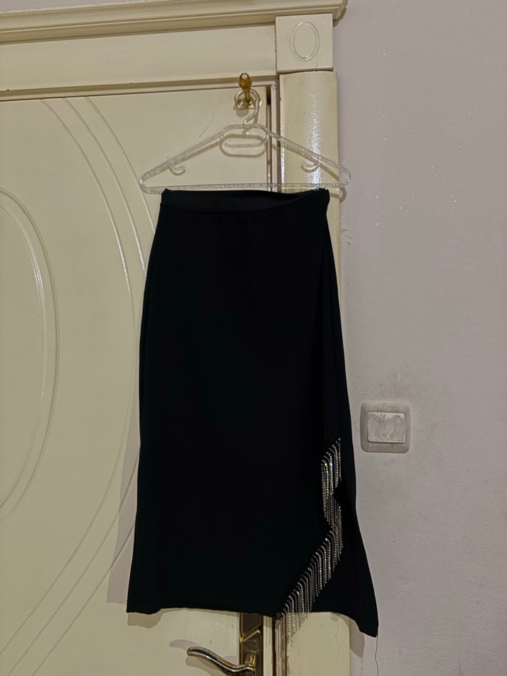 Drapeli Siyah Uzun Kadın Etek