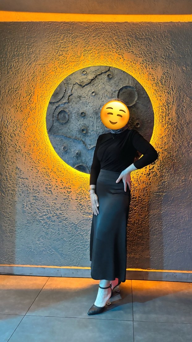 Drapeli ve regular fit olan bu siyah uzun etek, yumuşak sentetik kumaştan yapılmıştır. Sokak stili ve dış mekan kullanımı için uygundur.