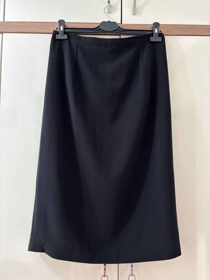 Siyah, drapeli uzun kadın eteği, regular fit kesim ve ipeksi kumaştan üretilmiştir. Ofis için uygun, sade ve gotik tarzda bir modeldir.