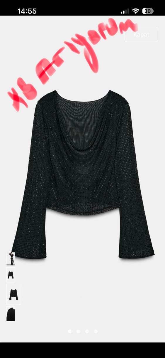 Siyah renkte, uzun kollu, drapeli yakaya sahip, yumuşak sentetik kumaştan üretilmiş, bol kesim bluz. Parti için uygun. ✨