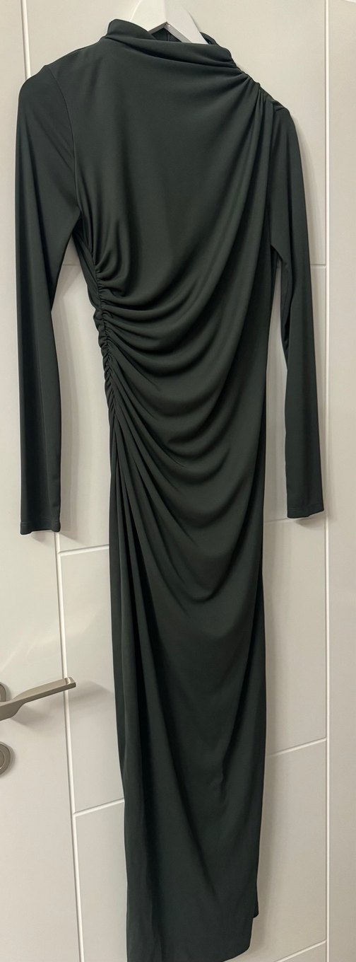 Drapeli, yüksek yakalı ve uzun kollu antrasit uzun elbise, yumuşak sentetik kumaştan. Cok temiz ürün