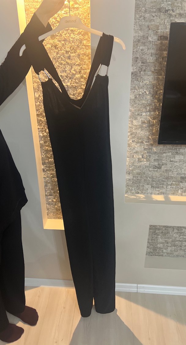 Bu siyah uzun abiye elbise, drapeli ve V yakalıdır. Kolsuz ve dar kesim olup, gotik ve avangart tarzlar için uygundur.