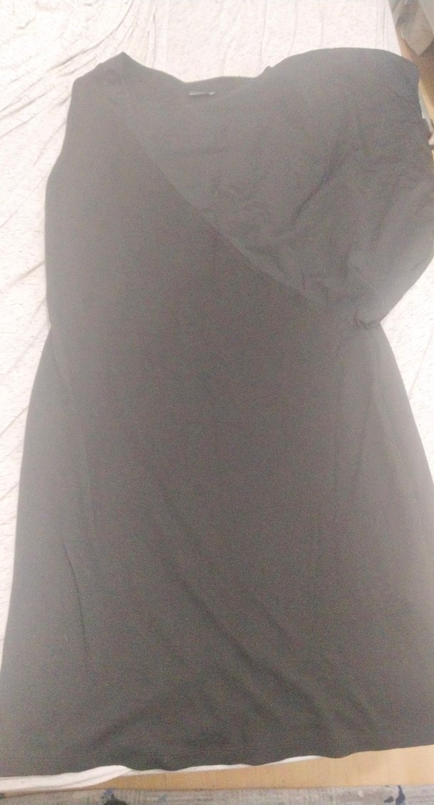 Drapeli V yaka, kolsuz siyah keten hamile tunik, midi boy ve vücuda oturan kesim, günlük kullanım için uygundur.
